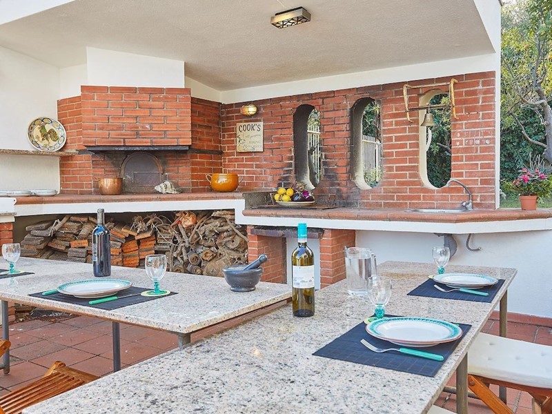 Una villa esclusiva, immersa nel verde, con vista mare, piscina, ampi spazi interni ed esterni, dependance, riserva idrica, a pochi minuti dalle spiagge e dal porticciolo.