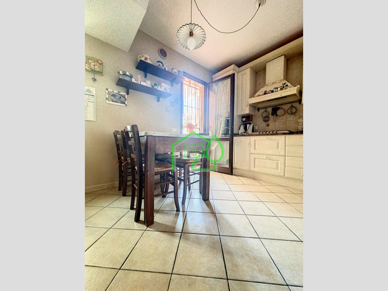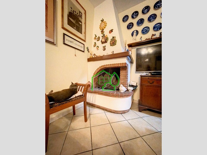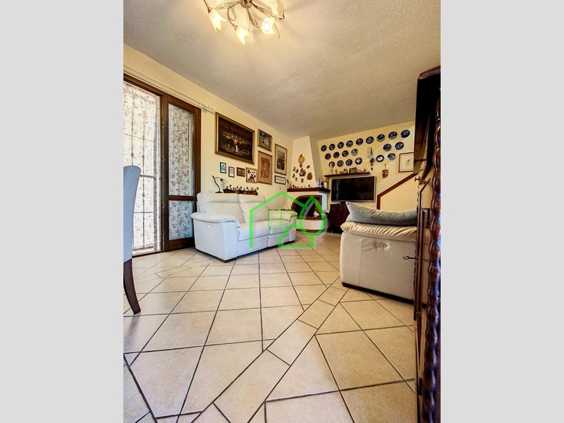 Si compone da ingresso soggiorno con camino, cucina abitabile con dispensa al piano terra; dal salotto si accede ad un ampio balcone e dalla cucina alla zona pranzo in giardino.