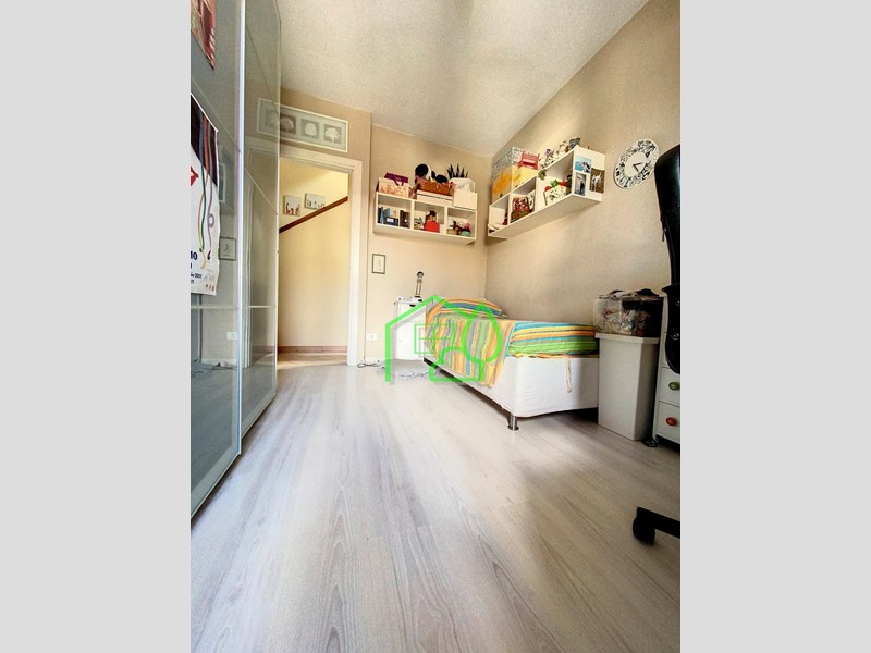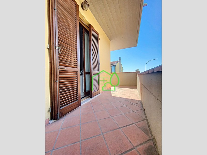 Al primo piano troviamo disimpegno con zona armadi a muro, camera matrimoniale con terrazza, camera media con balcone bagno con doccia;