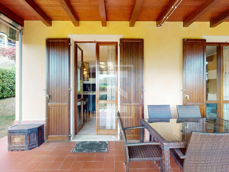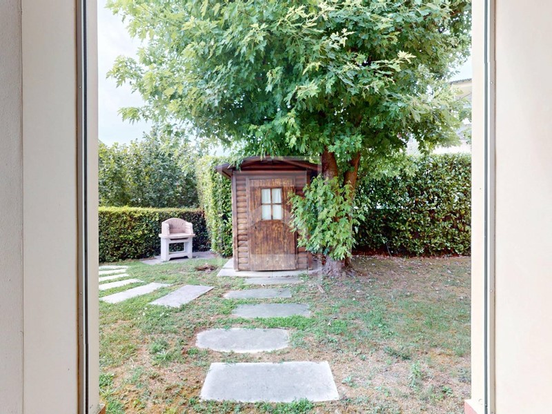 Allesterno, lappartamento vanta un ampio giardino privato su tre lati, che garantisce riservatezza e spazio verde da vivere in ogni stagione. Il portico coperto offre una zona ideale per cene allaperto e relax.