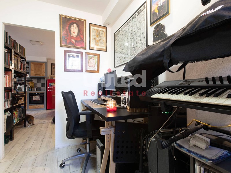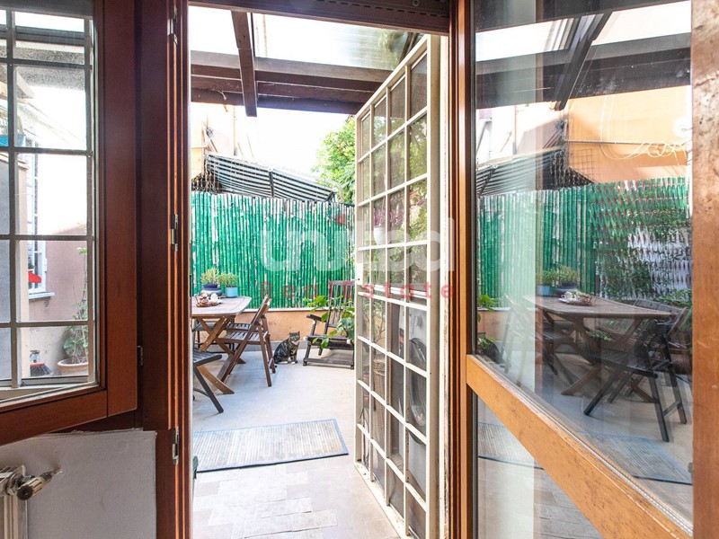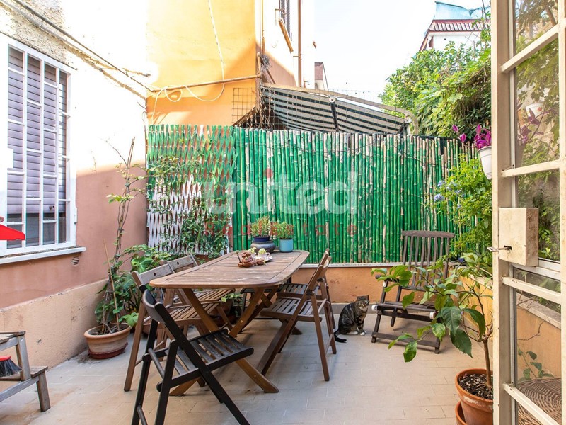 L'appartamento è composto da un unico ambiente, dove convivono zona giorno e zona notte, un bagno separato e una piccola area esterna.