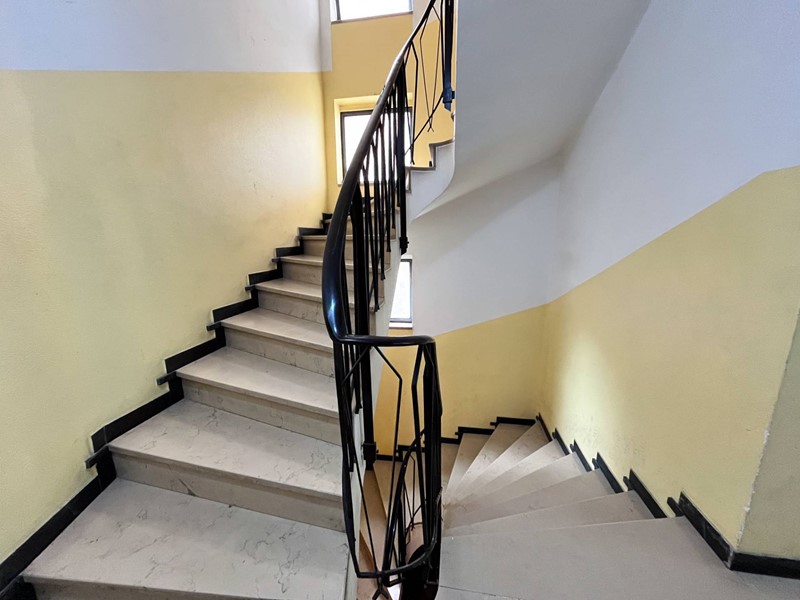 Il condominio, in buone condizioni generali, è dotato di ascensore, strutturato su sei piani fuori terra, con cantine, autorimesse e locali comuni al piano seminterrato.