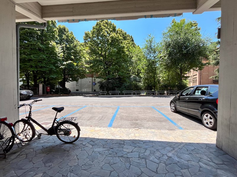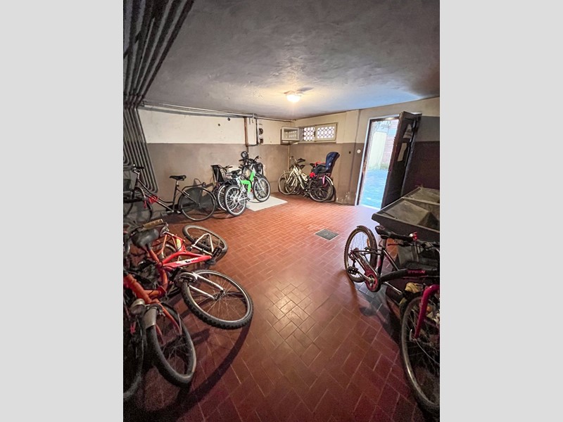 Completano la proprietà una cantina di circa 9 mq, al piano seminterrato, e un posto auto scoperto di 12 mq, situato nellarea cortiliva comune chiusa da sbarre con accesso tramite telecomando.