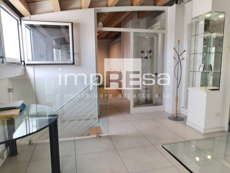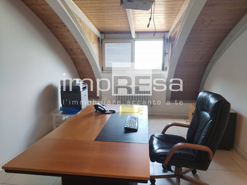 Al piano principale, dopo ingresso e disimpegno, troviamo un primo locale ufficio. Salendo la scala a vista, ci troviamo nello splendido piano mansardato suddiviso in ulteriori tre locali/ufffici con il bagno.