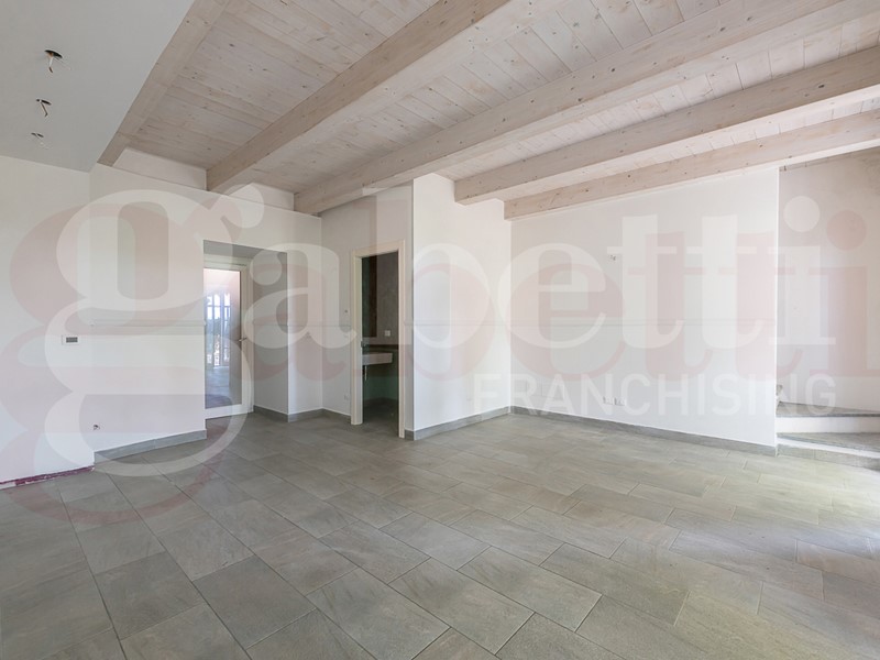 In contesto collinare tranquillo e riservato, circondato dal verde ma comodo alla viabilità, appartamento di recente realizzazione composto da tre locali e disposto su due livelli per una superficie totale di circa 115 mq..