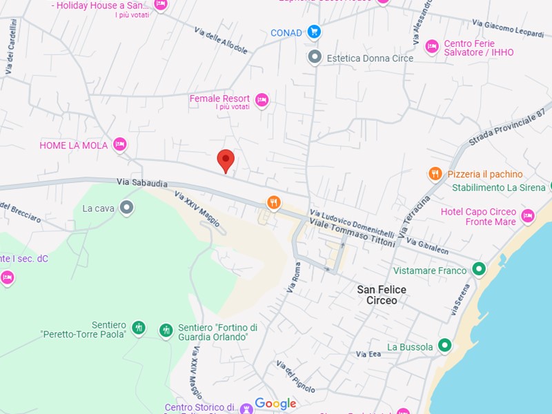 A 1,2 Km dal centro di San Felice Circeo, 700 mt dal supermercato conad e dalla fermata dell'autobus.