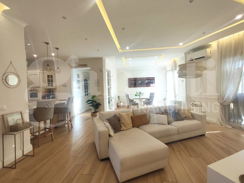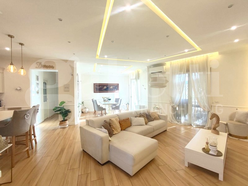 Ercolano, Via Benedetto Cozzolino, in zona tranquilla al contempo ben collegata alla galleria commerciale "LE PENDICI", proponiamo in vendita: ELEGANTE IMMOBILE, composto da: ampia cucina-soggiorno living, 2 camere e 2 servizi, completamente rifinito. L'appartamento, sito nel parco "LA RINASCITA" con ampi spazi verdi condominiali ben tenuti ed aree ricreative dedicate ai bambini, e' munito di: un comodo POSTO AUTO ASSEGNATO condominiale, con possibilita' di parcheggio libero anche per gli ospiti, in spazio dedicato. Il cespite, che si sviluppa per una superfice interna di circa 95 mq, ed e' caratterizzato da una recente e ricercata ristrutturazione, eseguita con gusto ed attenzione ai dettagli. L'open space, che combina zona living ed angolo pranzo, e' arricchito da controsoffitte di design con faretti di tonalita' neutre, che conferiscono agli ambienti eleganza ed un tocco di raffinatezza. Completano il rifacimento interno: un impianto di antifurto, riscaldamento centralizzato e condizionamento, infissi doppio vetro camera, muniti di: cancelli, zanzariere ed apertura elettrica delle tapparelle. L'appartamento, posto al primo piano, con doppia esposizione LIBERA e SOLEGGIATA, si distingue per la sua ottima illuminazione naturale, grazie ai diversi punti luce presenti e collegati strategicamente a tutti gli ambienti. I due terrazzini a livello, rispettivamente di 25 e 15 mq, offrono spazi ideali per rilassarsi, godere della vista panoramica, creando così un'atmosfera piacevole anche all'aperto.