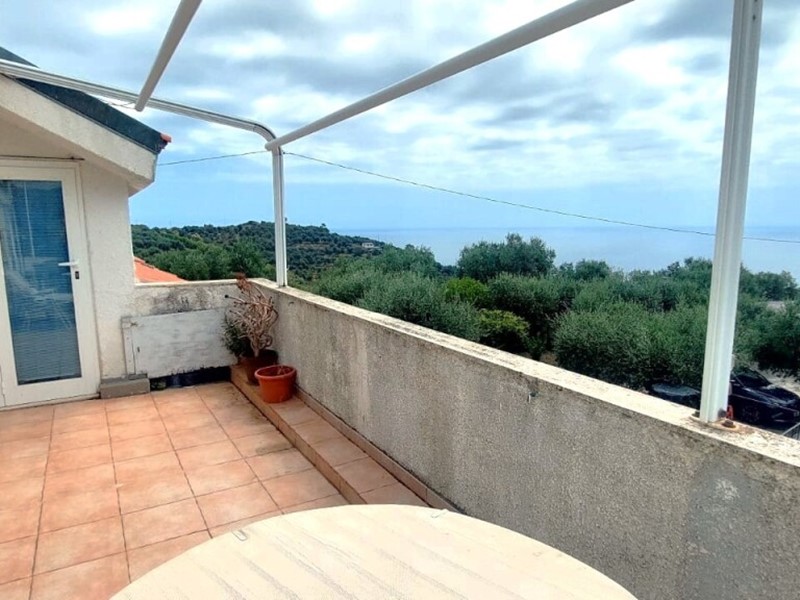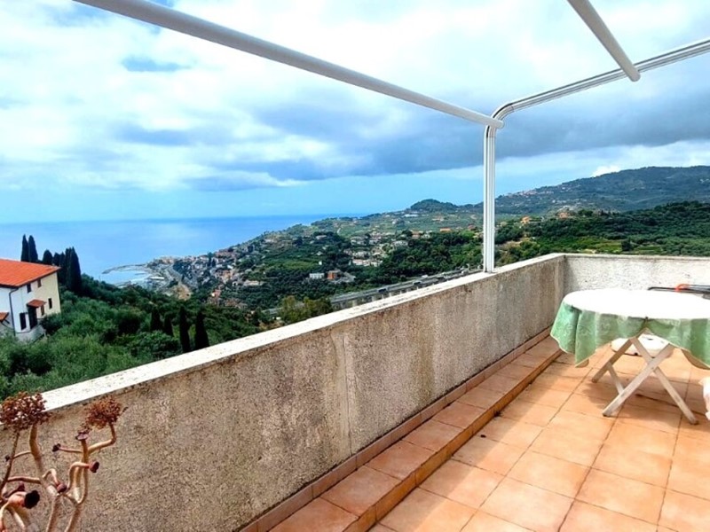 Imperia, a 1,4km da Poggi, in posizione panoramica, in villa trifamiliare in vendita appartamento mansardato con ampia terrazza vista mare e garage di proprietà, composto da: ingresso nella zona living con angolo cottura, due camere, bagno, termoautonomo, molto soleggiato sino al tramonto, vista mare e monti, adatto sia come prima casa che come seconda. Dista 1,4 km da Poggi dove troviamo un negozio di alimentari e un ristorante. a soli 4km dal mare e dalla pista ciclabile, servito anche da autobus. ape D