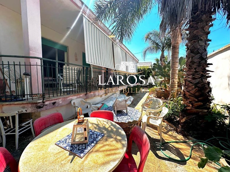 Distribuzione interna: La villa si sviluppa su un unico livello, con una superficie ben distribuita e luminosa. All’ingresso troviamo un’ampia sala da pranzo, arricchita da grandi porte-finestre con affaccio sulla veranda laterale. Un comodo cucinino, con finestra e accesso diretto alla zona giorno, completa questa prima parte della casa, perfetta per la convivialità e la vita quotidiana. La zona notte è distribuita su due lati della casa: Due camere da letto matrimoniali, ampie e luminose, Un bagno finestrato, dotato di doccia e servizi. Dal lato opposto, adiacente al cucinino, si sviluppa una seconda zona notte composta da: Una terza camera matrimoniale, Una cameretta singola, entrambe con finestra, Un secondo bagno, anch’esso con doccia e servizi. Dalla zona giorno, una porta-finestra conduce alla veranda laterale attrezzata, ideale per pranzi e cene all’aperto, circondati dalla quiete e dalla brezza marina.