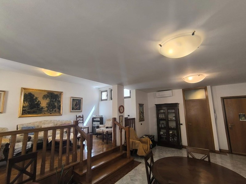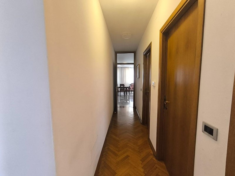 Situato al secondo piano con ascensore di un elegante e signorile condominio composto da sole tre unità immobiliari, questo immobile offre un vero comfort e tranquillità. L’appartamento si apre con ingresso direttamente nel salone ampio e luminoso, impreziosito da una balaustra in rovere che aggiunge un tocco di calore e carattere all’ambiente. La cucina è abitabile, perfetta per le esigenze quotidiane, e un disimpegno porta al bagno finestrato con affaccio nell’interno. Nella zona notte troviamo tre camere da letto, di cui una con accesso a un balcone che si affaccia sui giardini interni, regalando una vista piacevole e rilassante. Sono presenti anche altri due bagni entrambi finestrati, uno dotato di ampia cabina doccia e l’altro con comoda vasca da bagno, rendendo gli spazi ancora più funzionali.