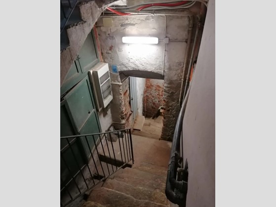 Appartamento al piano secondo composto da ingresso, wc, cantina, disimpegno, locale di sgombero, camera e balcone; al piano primo sotterraneo locale cantina; al piano secondo sotterraneo altro locale cantina.
