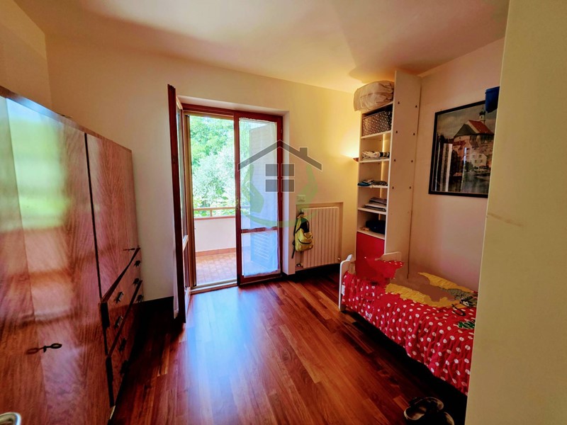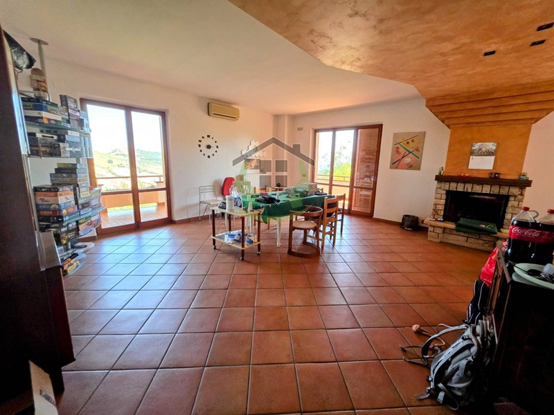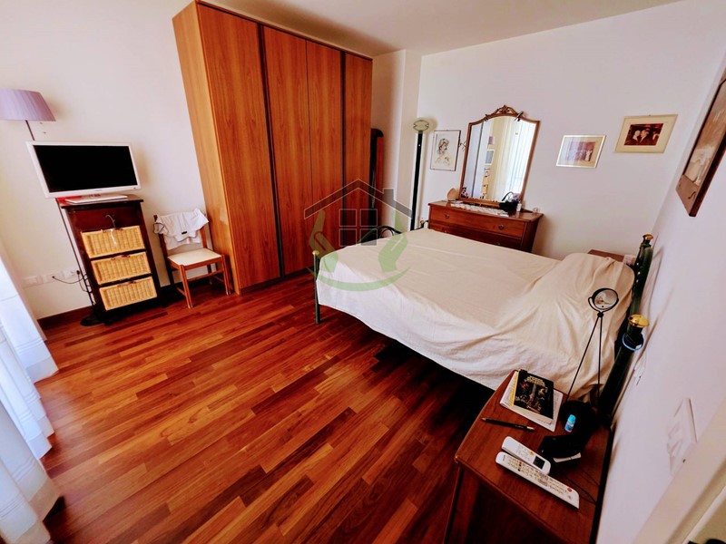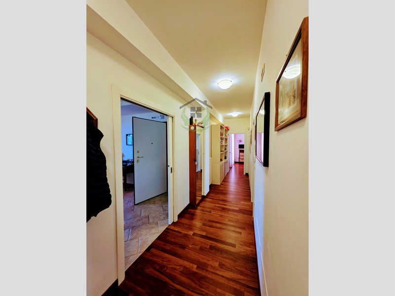 Piano primo di 140 mq (oltre balconi perimetrali panoramici) con ingresso su ampio soggiorno con angolo cottura e camino, tre camere da letto, due bagni.