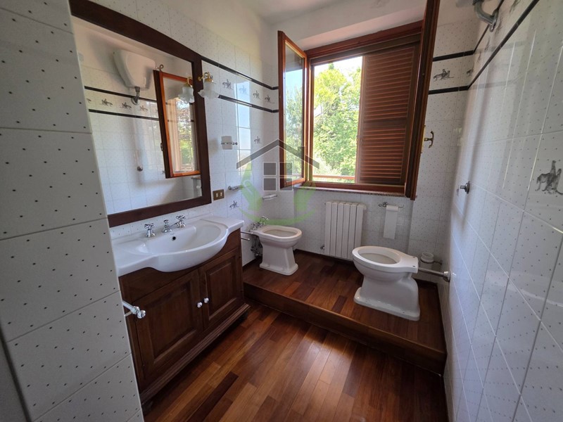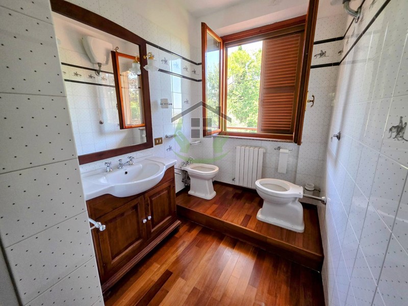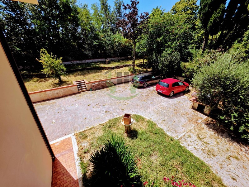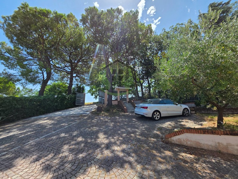 Porto San Giorgio, FM, sulla prima fascia collinare a meno di 3 km dal mare e con bella vista panoramica, l'immobiliare Oggi Trovo Casa propone in vendita villa indipendente libera sui quattro lati e completa di ampio parco perimetrale in parte pianeggiante dov'è presente la corte perimetrale in parte pavimentata ed in parte a giardino.