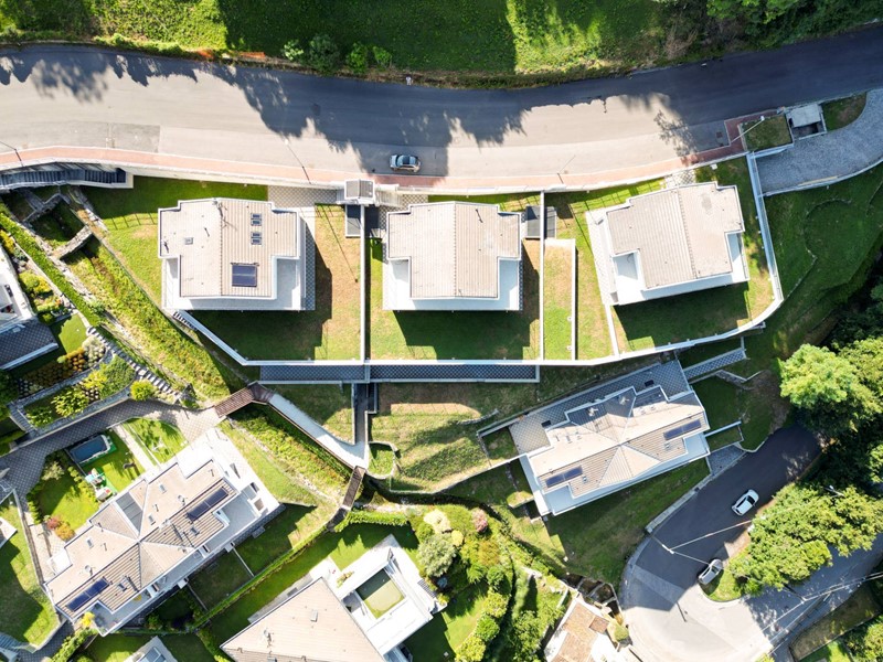 La villa è caratterizzata da suggestive vetrate panoramiche, rifinita con materiali di pregio che rendono le unità uniche ed esclusive.