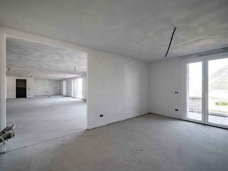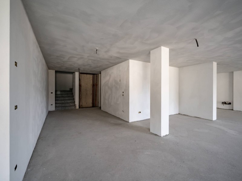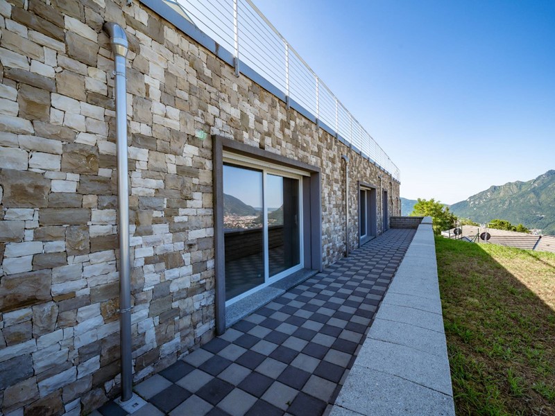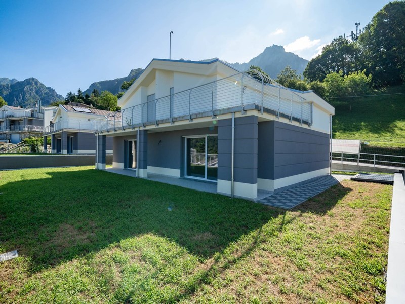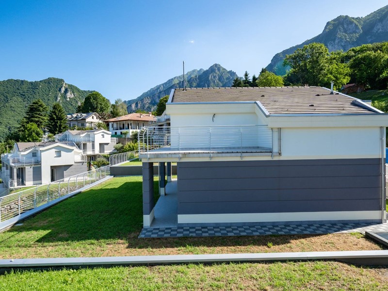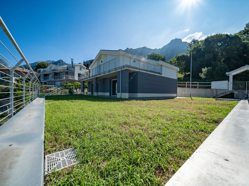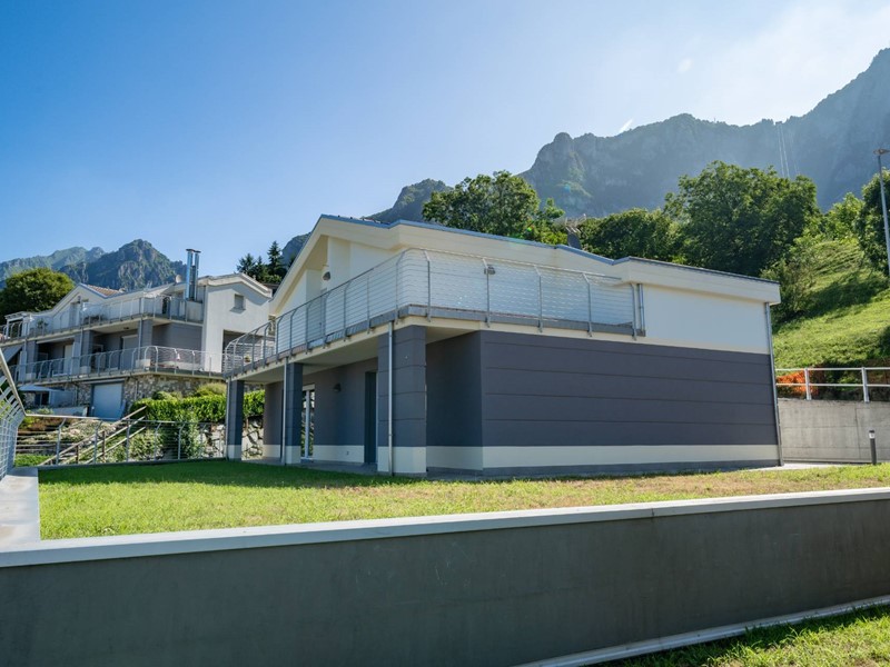 E' strutturata da un piano interrato con un'ampia autorimessa, un locale taverna con accesso al giardino e locali accessori come cantina e lavanderia; al piano terra troviamo la zona living ampia e luminosa con accesso diretto al terrazzo panoramico ed al giardino pianeggiante di circa 500 mq, la cucina abitabile, la camera padronale ed il bagno di servizio. Il piano primo è composto da un locale sottotetto non abitabile con accesso al terrazzo con vista sul lago.