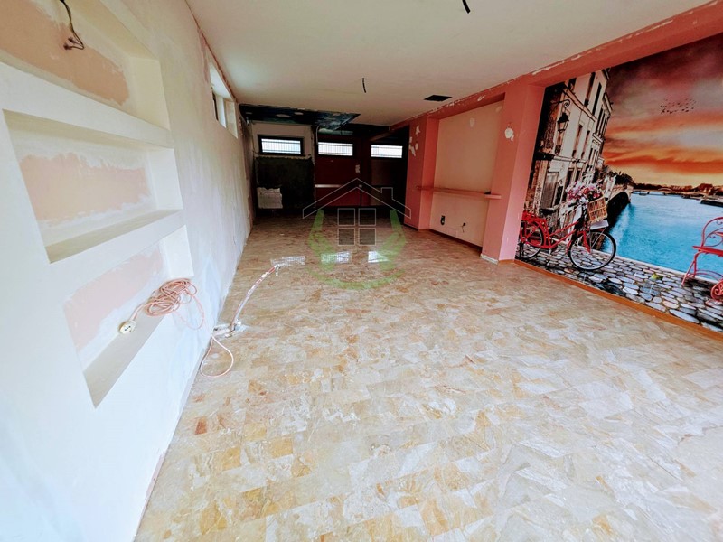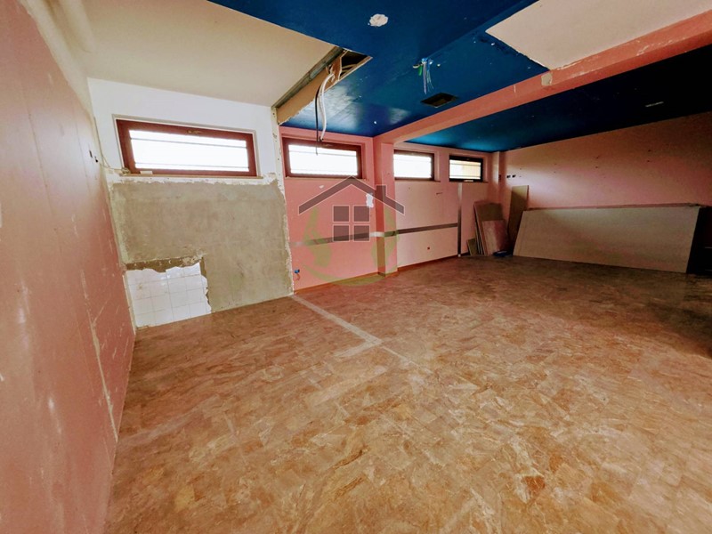 Locale in buone condizioni con infissi in alluminio effetto legno completi di vetro termico e zanzariere, due bagni autonomi e palina su fronte provinciale con concessione di proprietà.