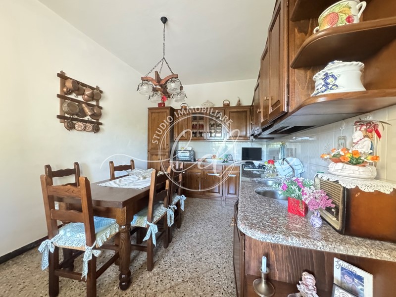 Dalla veranda si accede alla zona giorno, composta da ampio soggiorno, cucina abitabile e servizio con doccia.