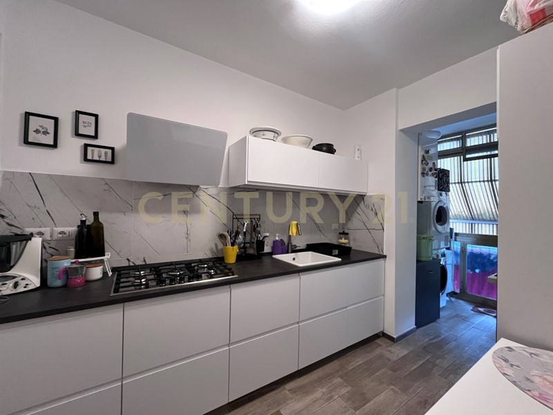 all’ingresso si apre un pratico armadio a muro su misura, seguito da un soggiorno luminoso ed accogliente, La cucina abitabile, spaziosa e funzionale, è impreziosita da una veranda chiusa, ideale come zona lavanderia o angolo relax.