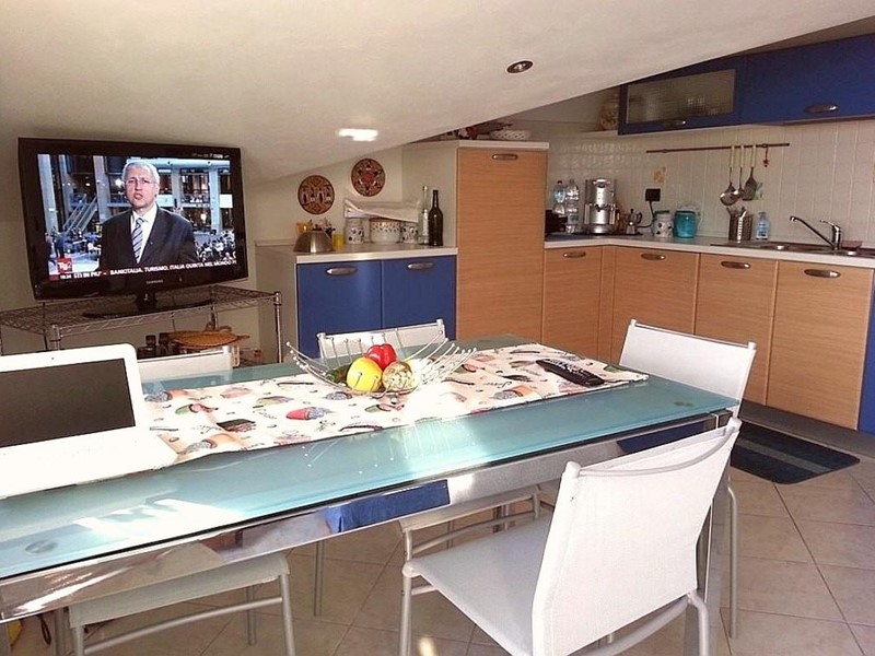 P. sottotetto - raggiungibile con scala interna, cucina, camera , bagno e grande terrazza pranzabile di circa 60 mq. per cene con amici.