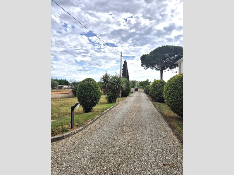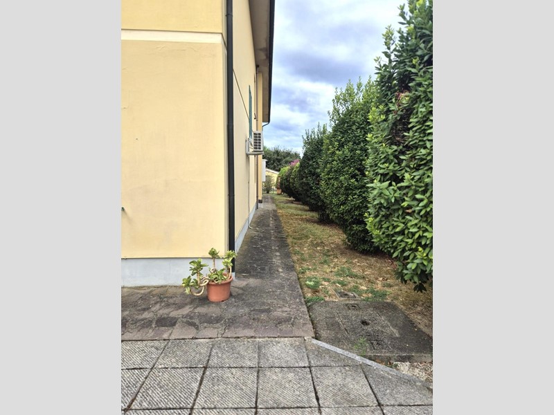 La proprietà è completamente recintata, l'accesso all'unità abitativa è da vialetto in ottimo stato e sulla destra si trovano i mq 400 di giardino esclusivo, oltre al garage staccato dall'abitazione.