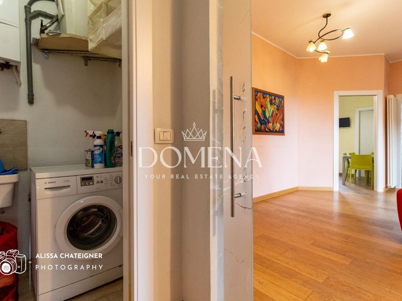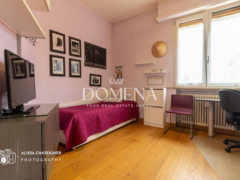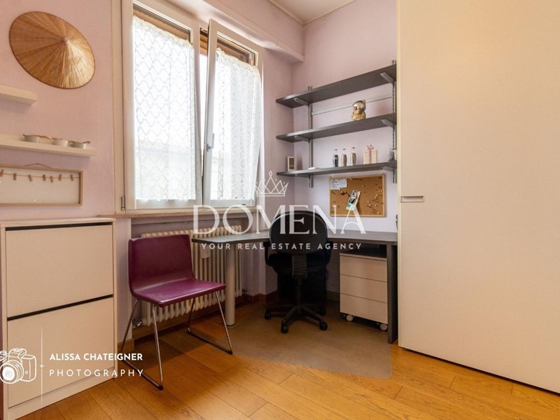 Completano la proprietà un ampio garage di 26 mq interno al palazzo al piano terra, una cantina finestrata di 7 mq e posteggi liberi lungo la strada principale e attorno all’edificio. Tutti i servizi principali sono raggiungibili comodamente a piedi.