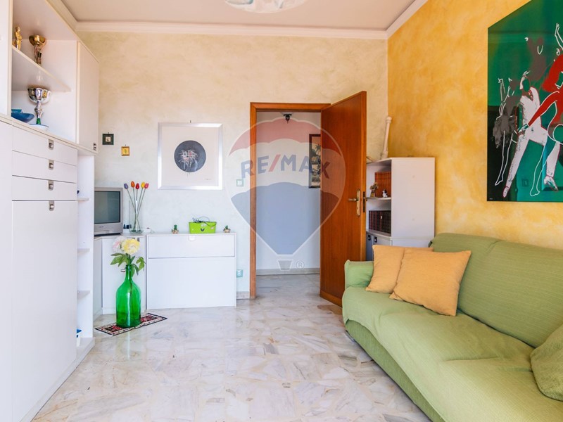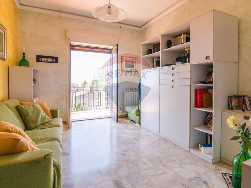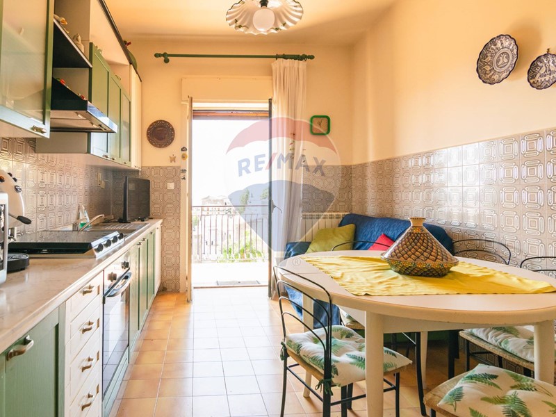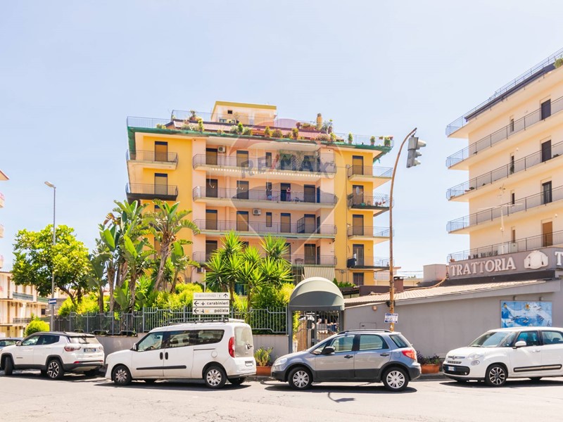 LImmobile di 5 ampi vani balconato in tripla esposizione con vista mare e vista Etna, molto luminoso, soleggiato e arieggiato, è così composto: ingresso su disimpegno, salone doppio, 2 camere da letto, cucina abitabile, 2 bagni, camera da letto matrimoniale e ripostiglio.