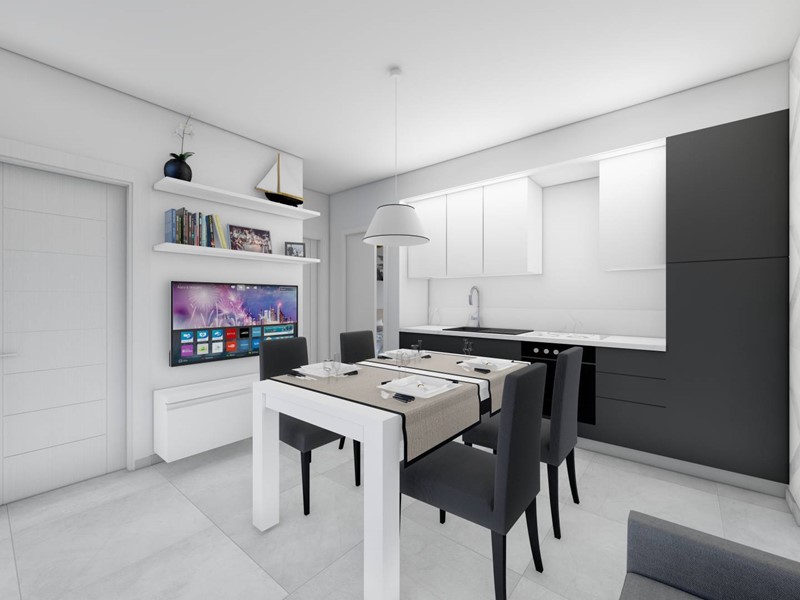 La soluzione, rifinita con uno stile architettonico moderno ed elegante, si compone da: ingresso su ampio soggiorno con angolo cottura, bagno principale finestrato con doccia e camera da letto.