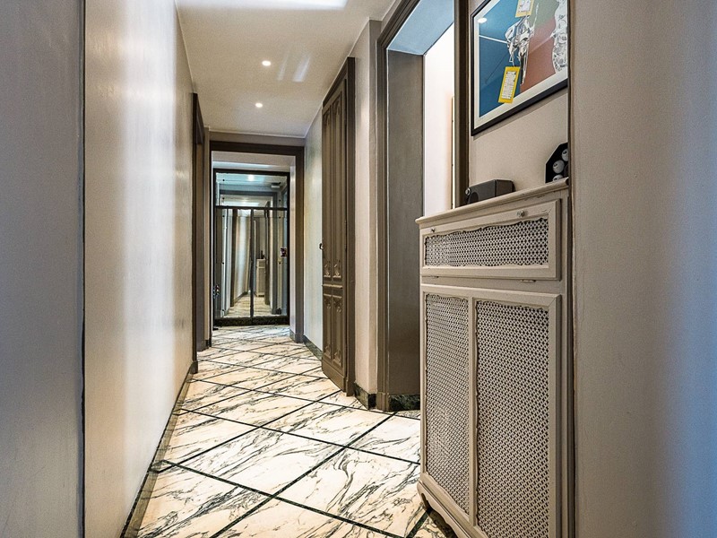 L' appartamento ha doppio ingresso, uno dei quali è servito da ascensore che porta direttamente in casa.