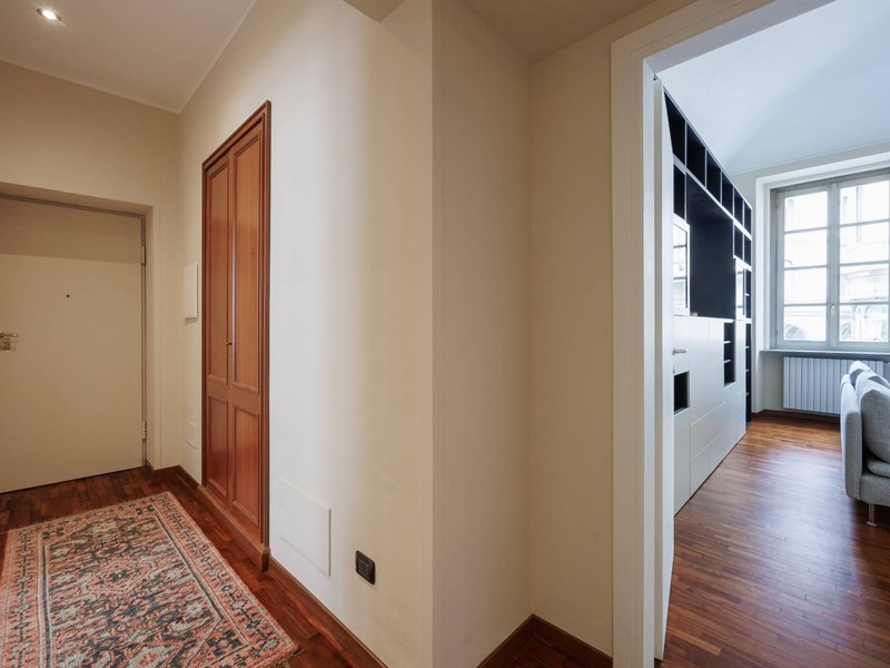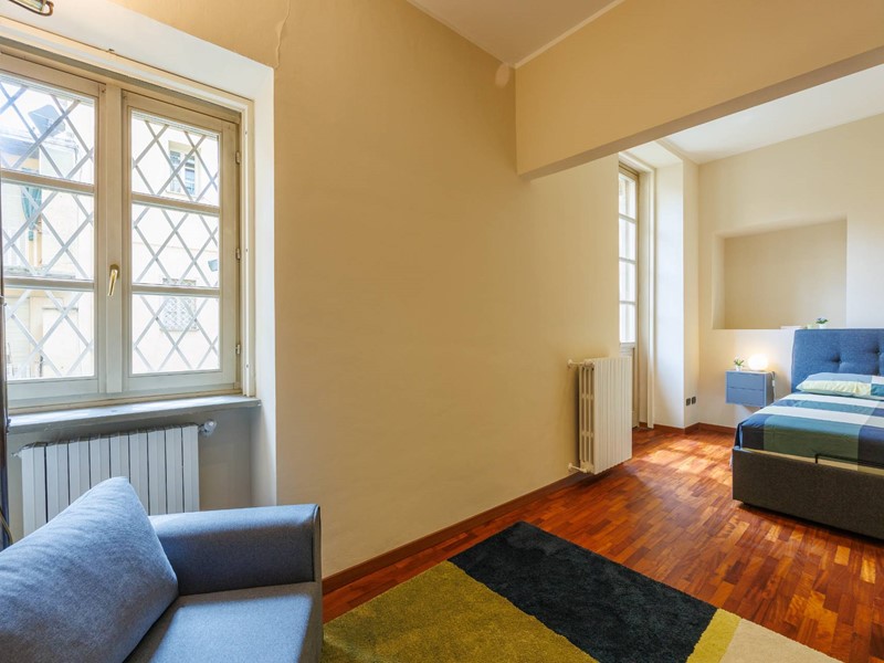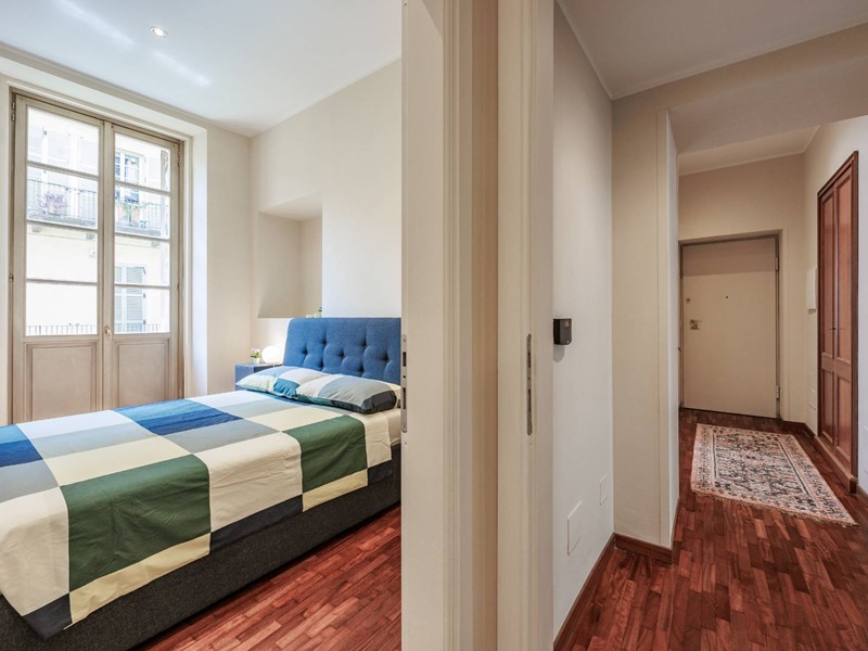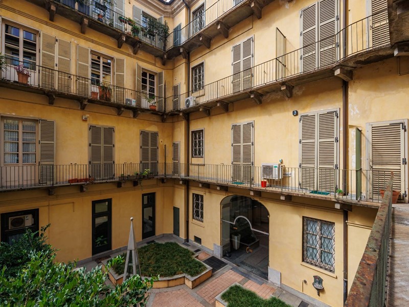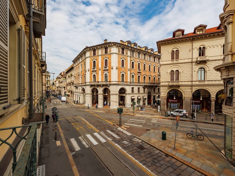 In stabile d'epoca restaurato recentemente, tra Piazza Solferino e Piazza Castello, luminoso appartamento completamente ristrutturato e arredato a nuovo al primo piano con affaccio su Via Bertola.