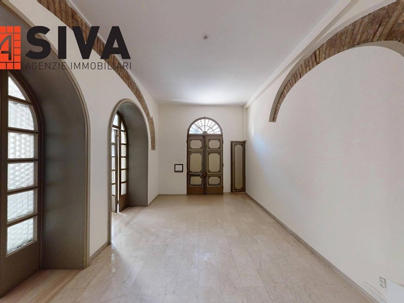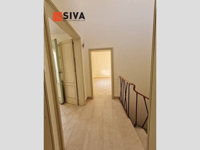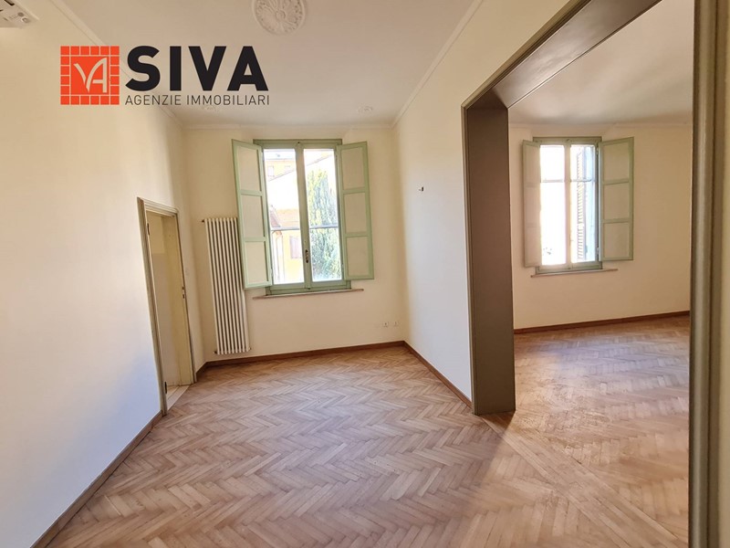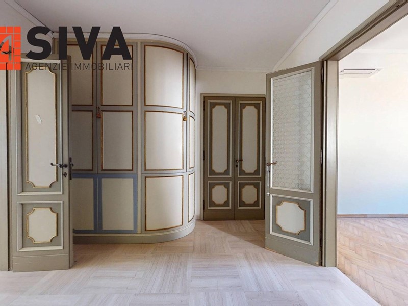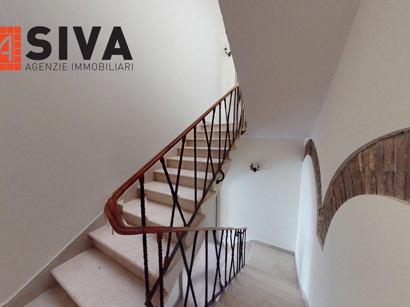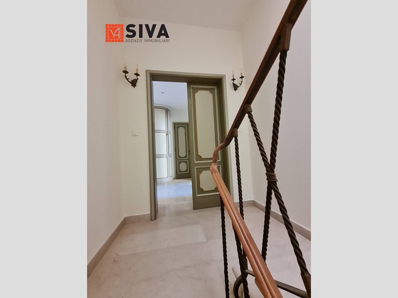 Salendo la scala, al primo piano troviamo il secondo appartamento, si presenta con caratteristiche di pregio sia per le ampie metrature e le altezze, sia nell'allestimento degli arredi fissi e modanature, cornici e pavimenti in legno posati a spina di pesce tipici dei palazzi storici. Attualmente sono presenti soggiorno, cucina e due camere da letto.