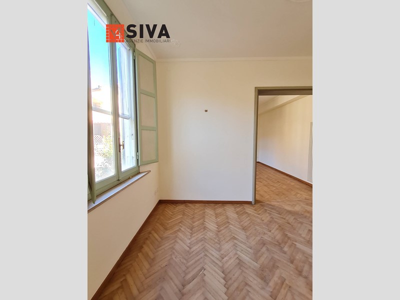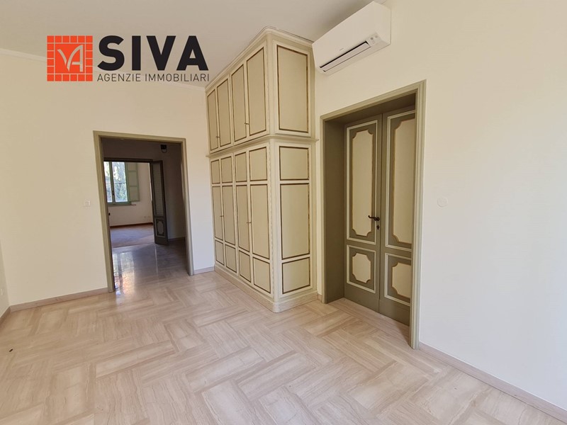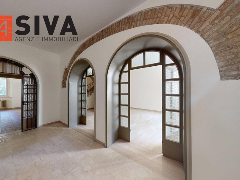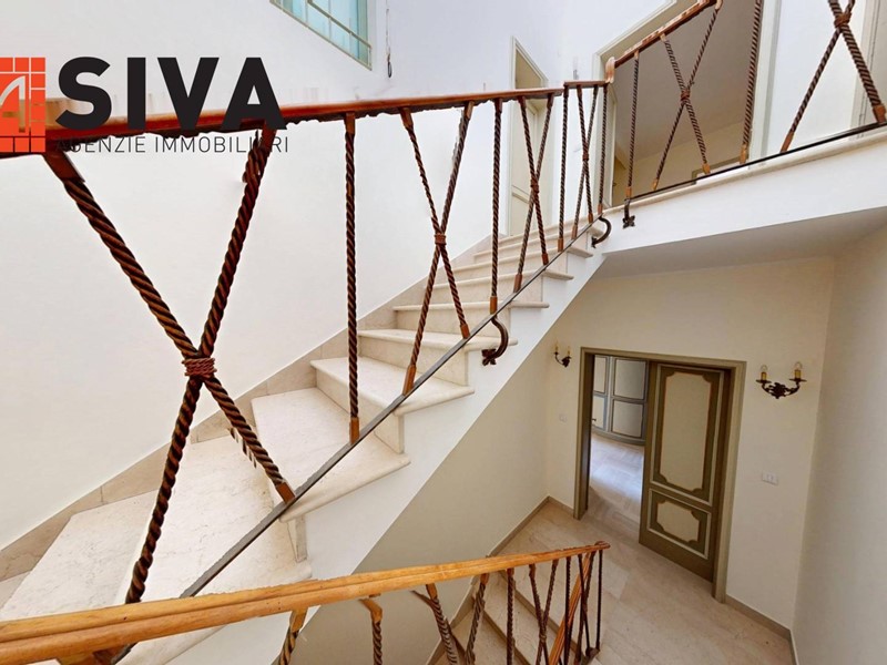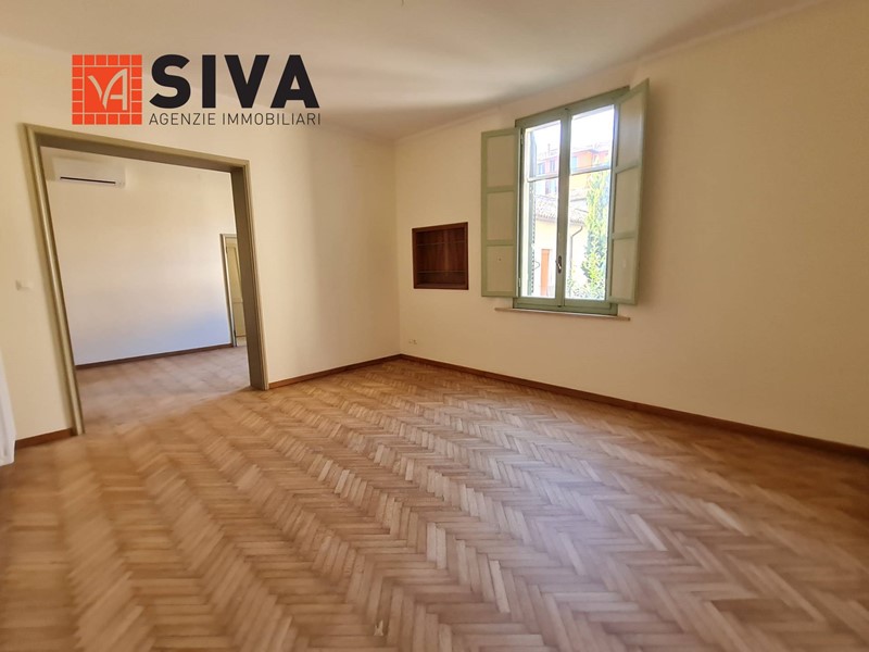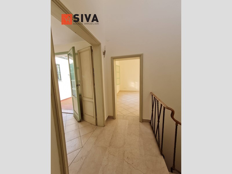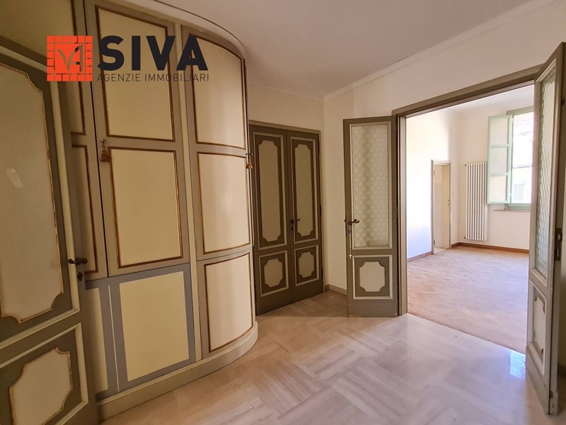 Salendo la scala, al primo piano troviamo il secondo appartamento, si presenta con caratteristiche di pregio sia per le ampie metrature e le altezze, sia nell'allestimento degli arredi fissi e modanature, cornici e pavimenti in legno posati a spina di pesce tipici dei palazzi storici. Attualmente sono presenti soggiorno, cucina e due camere da letto.