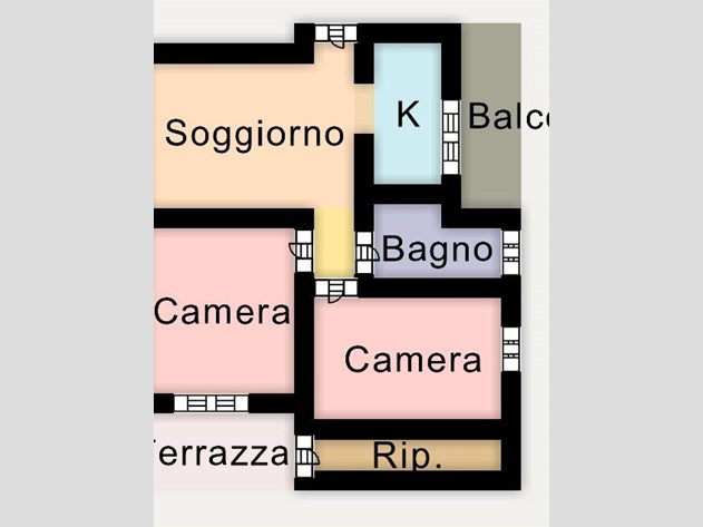 La soluzione, in ottimo stato conservativo, è composta da: ingresso su luminoso soggiorno, cucina abitabile con balcone esposto a sud e che affaccia sul cortile condominiale, disimpegno, bagno finestrato con doccia, spaziosa camera da letto matrimoniale e camera singola con accesso al terrazzino a tasca comprensivo di ripostiglio.