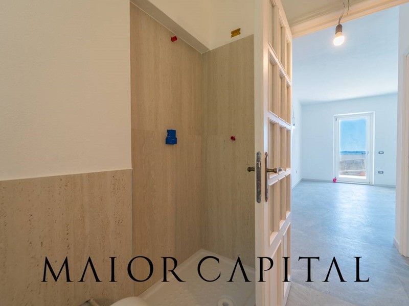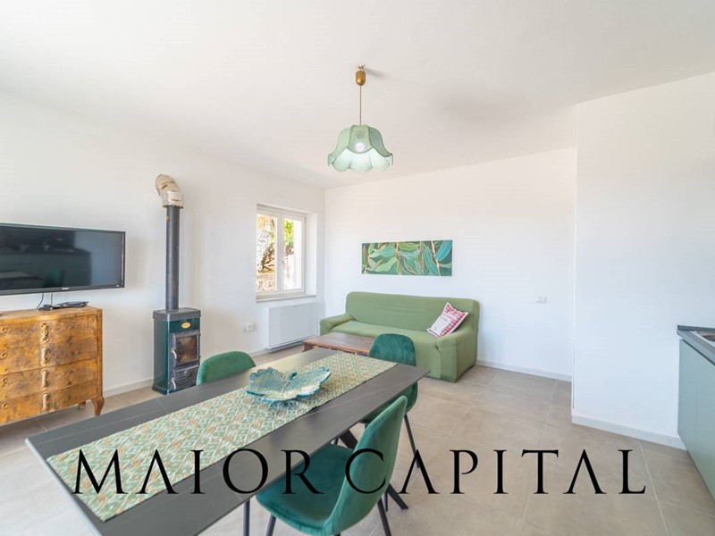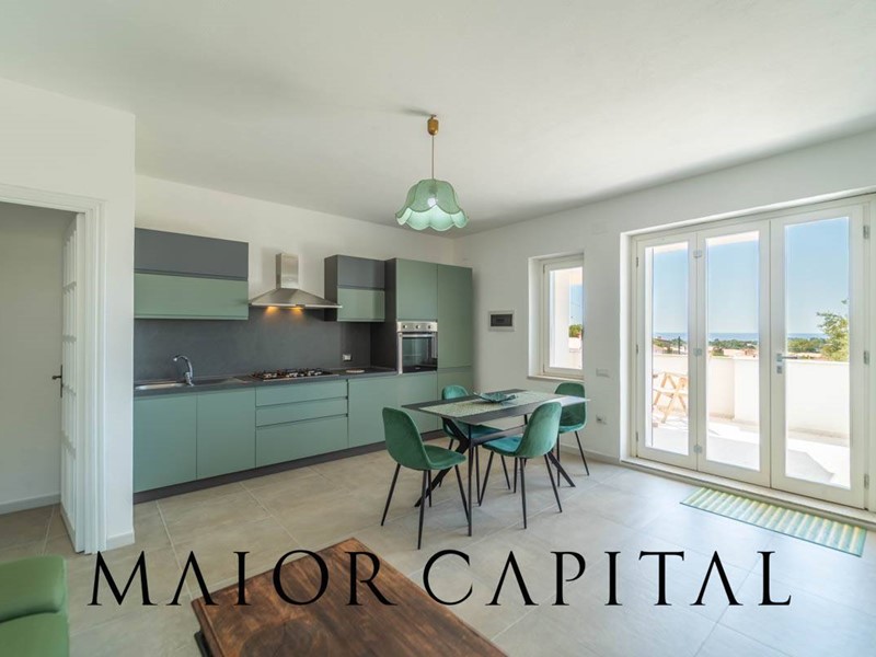 Ogni piano è organizzato come unità abitativa indipendente, con ingresso autonomo, offrendo così la possibilità di ospitare due nuclei familiari oppure di destinare una o entrambe le unità alla locazione turistica. Il piano terra si apre su una splendida veranda con vista mare e grandi vetrate che lasciano entrare abbondante luce naturale. La cucina open space dai toni verde salvia con finiture opache si integra perfettamente con la zona living, creando uno spazio accogliente e ben distribuito. A completare il piano una camera da letto matrimoniale e un bagno finestrato.