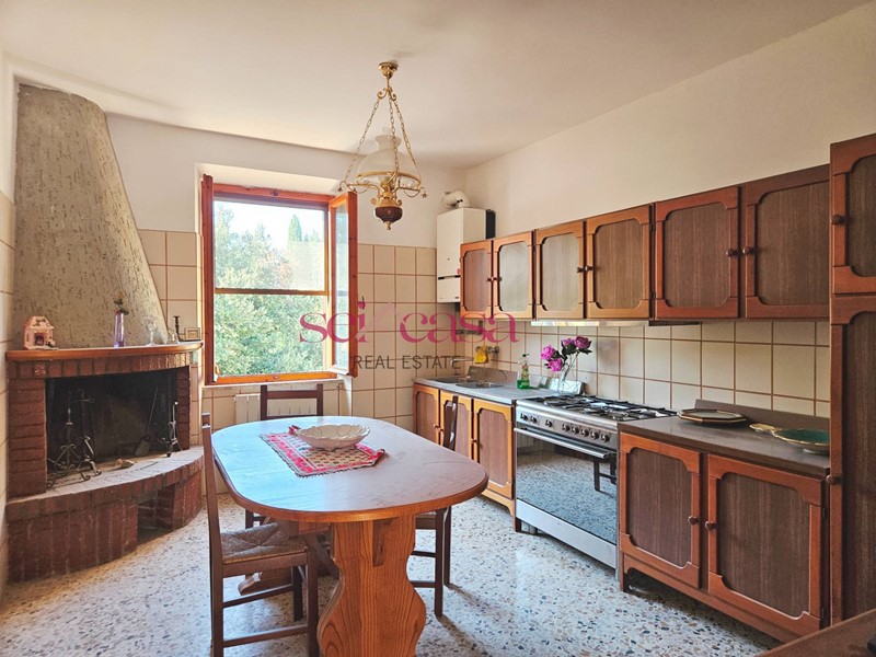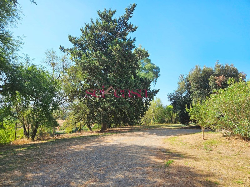 Nella proprietà insistono anche un capannone ad uso magazzino fienile, di mq 122 mq sul cui tetto è stato installato un impianto fotovoltaico., un pollaio/porcile di 39 mq,, un forno di 8 mq. Entrambi gli edifici sono realizzati in muratura portante di pietra e mattoni, successivamente intonacata e copertura in tegole marsigliesi. Un ulteriore fabbricato ad uso magazzino fienile di mq 51. Fanno inoltre parte della proprietà 22,5 ha di terreno suddivisi in seminativo 16,9 ha, oliveto 1,80 con 500 piante di olivo iscritto al Consorzio dellolio Toscano IGP, 1 ha di vigna, 1,2 ha di bosco, 1,5 ha di incolto, 3.000 mq censiti come ente urbano e numerose piante da frutto. Lazienda dispone inoltre di una piscina autorizzata ad uso agrituristico di circa 40 mq, oltre ad un pozzo per lirrigazione.