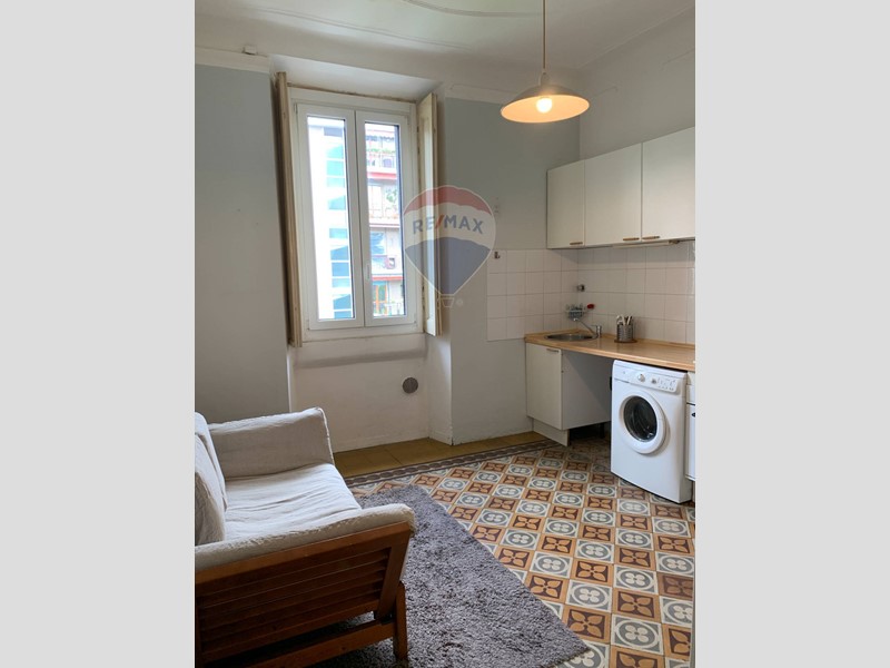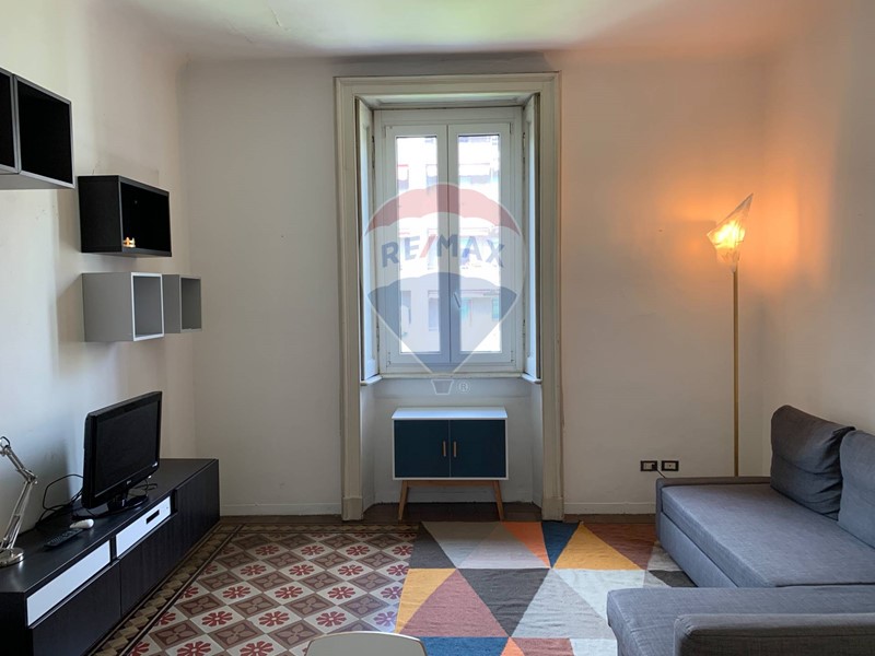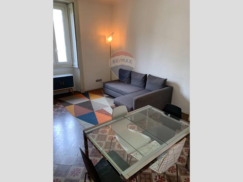 Elegante Stabile d'Epoca con ascensore, proponiamo in locazione appartamento di 2 Locali in doppia esposizione di 76 mq., posto al quarto piano, con soffitti h 3,10 m senza balcone. Dall'ingresso si accede al soggiorno molto luminoso, con un ampio disimpegno che conduce alla cucina abitabile arredata, ed alla camera matrimoniale con doppia finestra; il bagno con doccia e finestra sul cavedio. Gli infissi sono in legno con doppi e mono vetro, riscaldamento centralizzato, pavimentazione con marmette originali, porte in legno originali. L'appartamento viene consegnato parzialmente arredato con contratto 4+4 con cedolare secca.