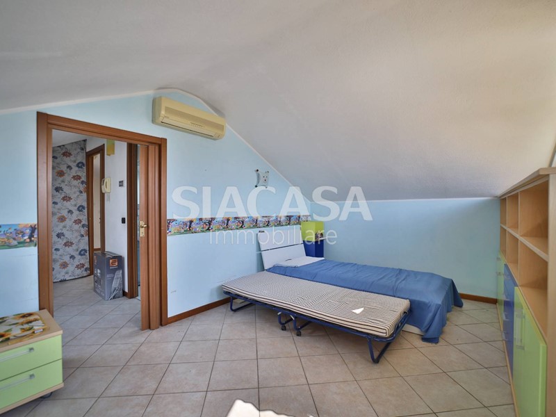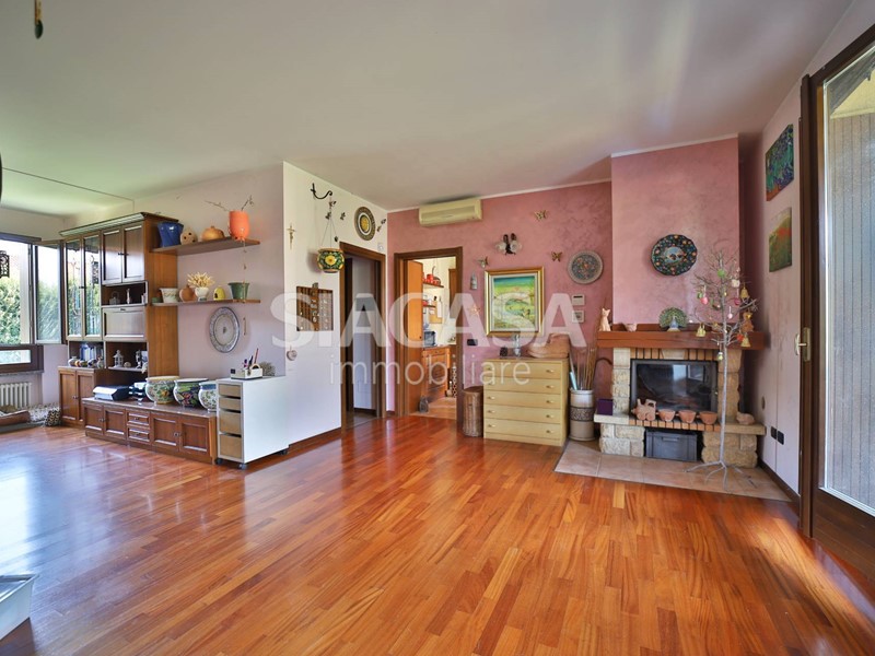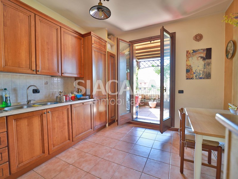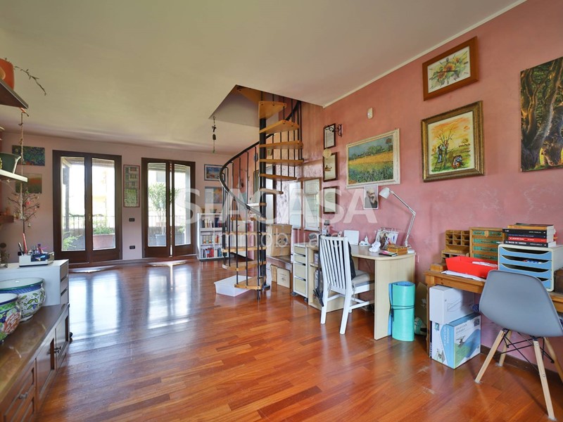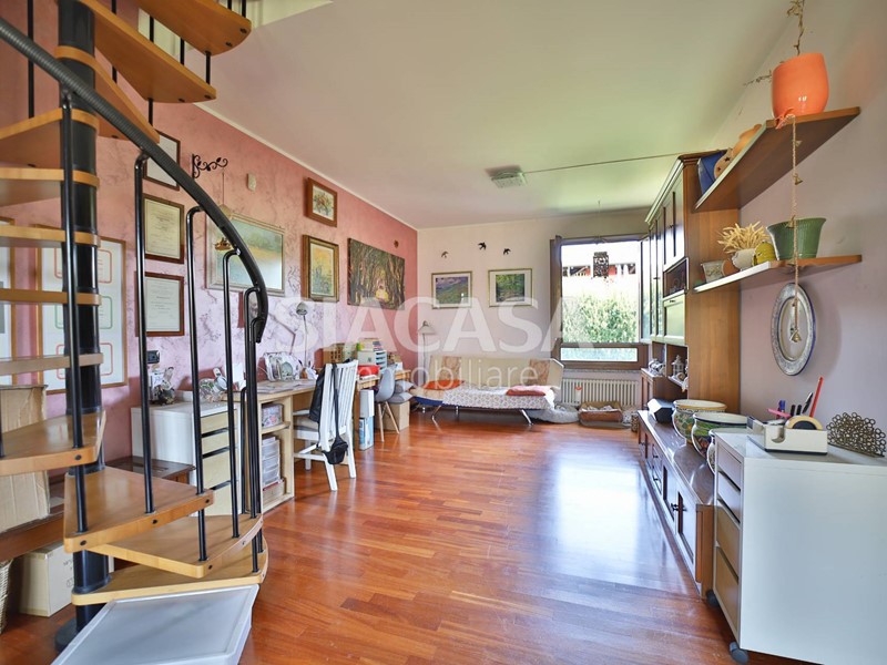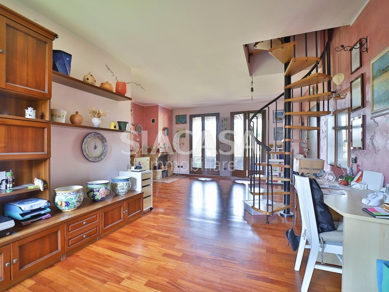 Limmobile, di totali mq 125, è stato realizzato nel 2000 ed è così composto: P1 ingresso nel soggiorno con camino, cucina abitabile, ampio terrazzo con pergolato e vista interna sul parco, disimpegno, bagno con doccia e camera da letto; P2, con accesso tramite scala a chiocciola, sottotetto con due vani e possibilità di ricavare il secondo bagno.