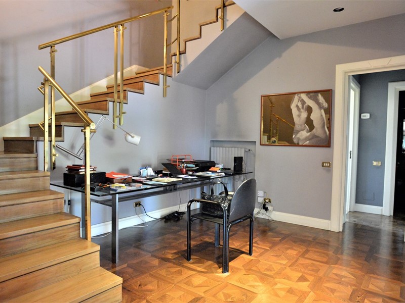 E' stata progettata con criteri moderni di suddivisione degli spazi. A piano terra si susseguono armonicamente i tre ambienti della zona giorno, spalancati sul verde del giardino ed inondati dalla luce; anche la cucina abitabile ha un comodo accesso diretto al verde. Il piano terra è completato dalla zona studio, posta in corrispondenza della bella scala che ci porta al primo piano, e dal grande bagno con antibagno. Al primo piano, la zona notte è composta da tre camere da letto, che hanno al loro servizio grandi spazi esterni (balconi e terrazzo) circondati dagli alberi, due bagni ed una bella cabina armadio.