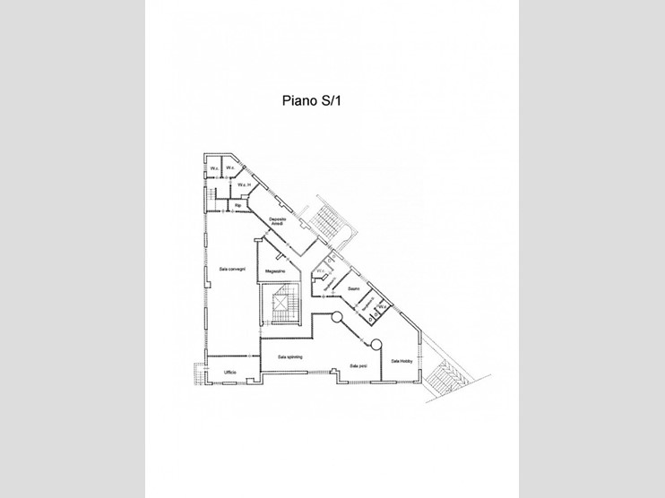 Al piano semicantinato abbiamo una sala convegni da oltre 100 posti a sedere, un locale sauna, i bagni e delle stanze libere che potrebbero essere utilizzate ad esempio come cabine massaggi.