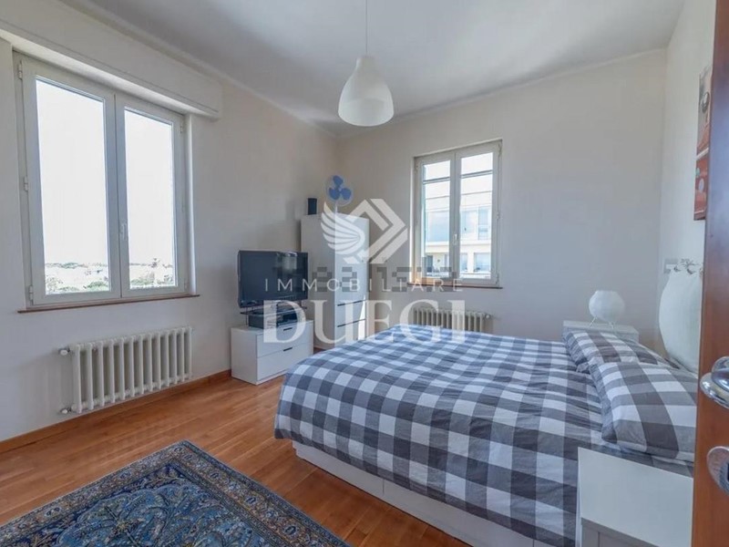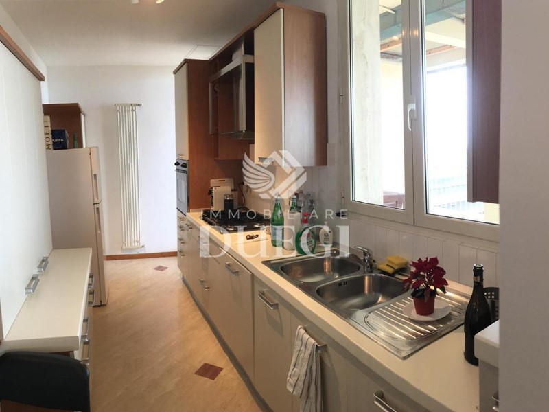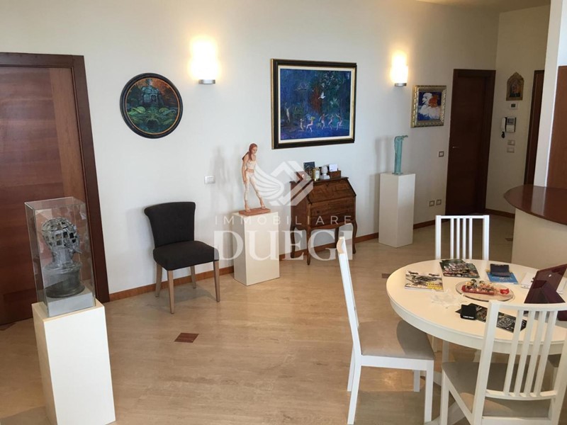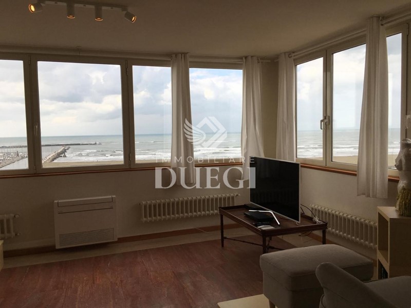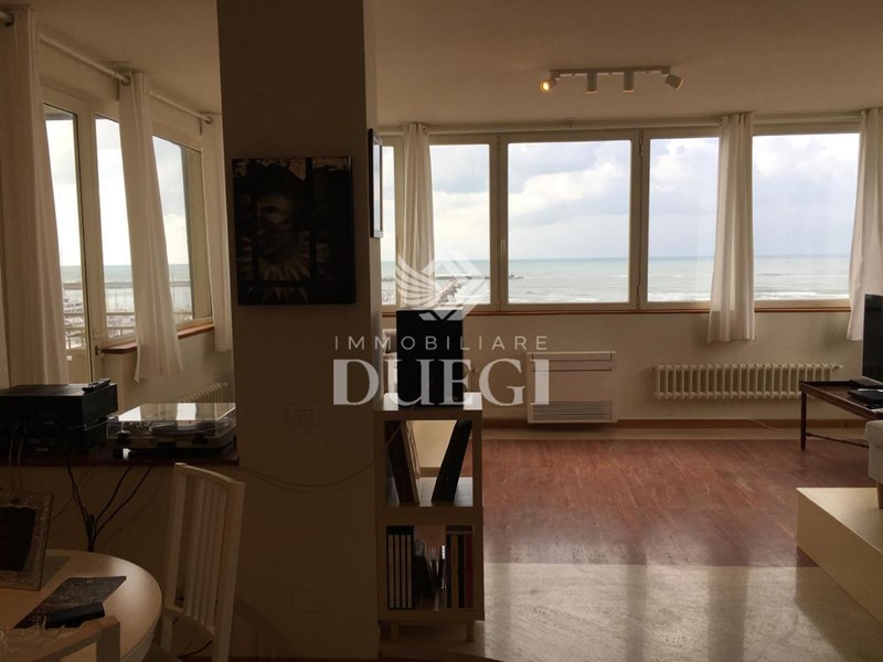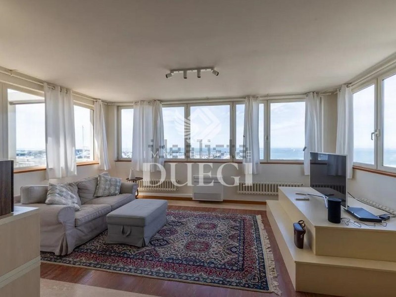 L'immobile è composto da ingresso, grande salone diviso in due zone di cui una con ampie vetrate da cui si gode una stupenda vista sul mare, sul molo e sulla Passeggiata, e da cui si accede direttamente ad una terrazza coperta di 20 mq,cucina a vista, disimpegno notte, 2 camere matrimoniali, 1 cameretta, 2 bagni ed balcone di servizio.