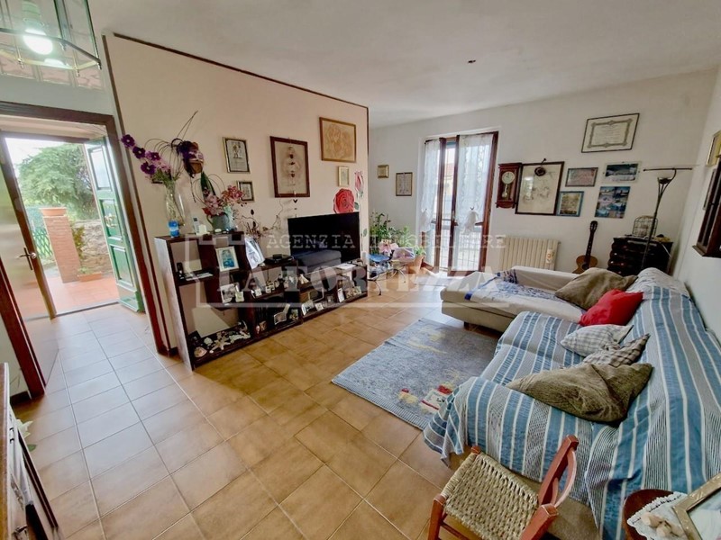 CAMPO: in contesto di campagna a pochi minuti di auto dalla città di Pisa, villa singola suddivisa in due abitazioni indipendenti e circondata da un ampio giardino di circa 800 mq. L' appartamento del piano terra, con rifiniture anni '90, è composto da un disimpegno d'ingresso, un soggiorno, una cucina abitabile, un disimpegno notte, due camere matrimoniali, una camera singola, un locale lavanderia ed un bagno, oltre ad un annesso in muratura di circa 55 mq. utilizzato come garage (possibilità di trasformarlo in civile abitazione). Da una scala esterna si accede all' unità immobiliare del piano primo, di recente e completa ristrutturazione, che presenta la superficie suddivisa in soggiorno con caminetto, cucina abitabile, disimpegno notte, due camere matrimoniali, una camera singola e bagno.