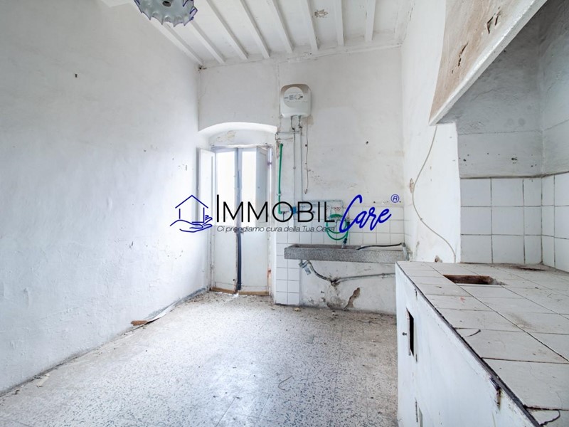 L’ingresso conduce a una cucina abitabile, con accesso diretto a un balcone dove si trova ancora la latrina esterna, elemento tipico degli stabili storici della zona.