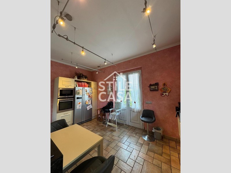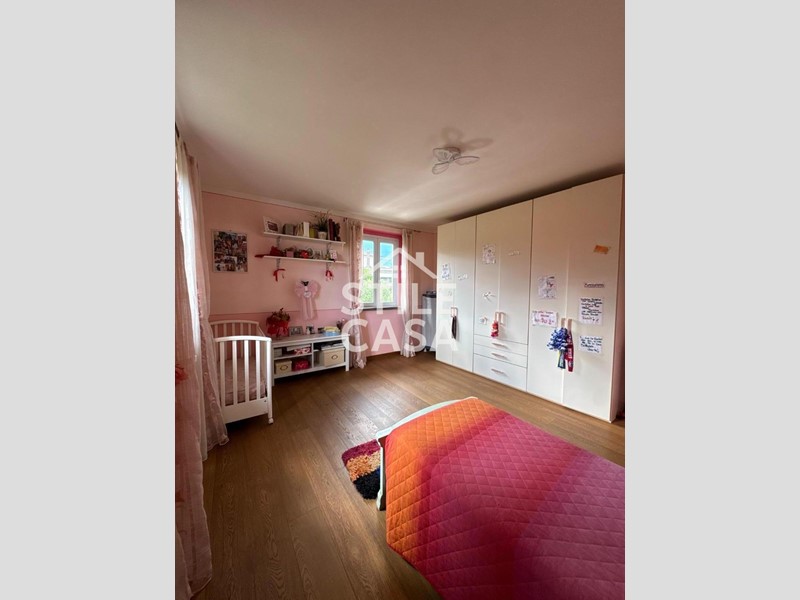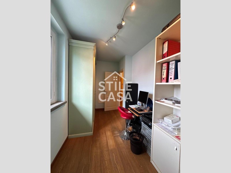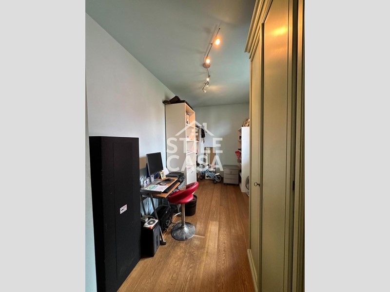 Il soggiorno dialoga in maniera fluida con la splendida cucina abitabile, completamente attrezzata e inclusa nella vendita, pensata per chi ama cucinare e condividere momenti conviviali. Gli arredi su misura, gli elettrodomestici di qualità e gli spazi sapientemente organizzati rendono questo ambiente il vero cuore pulsante della casa.