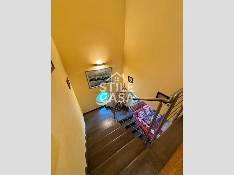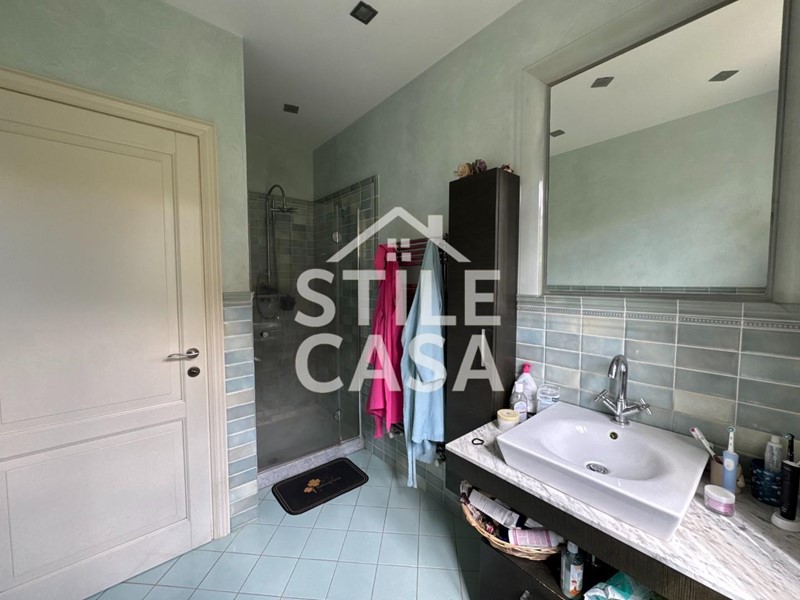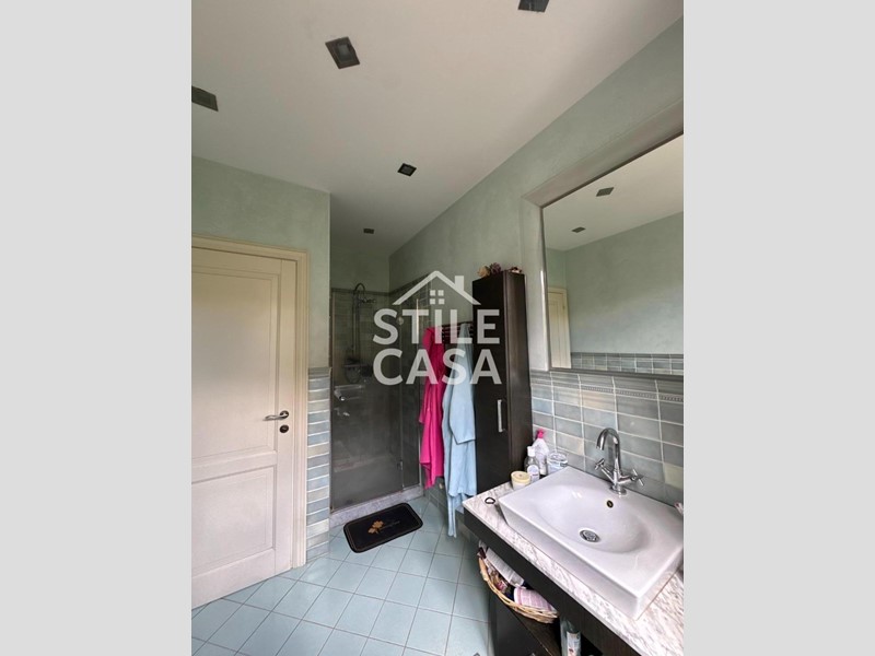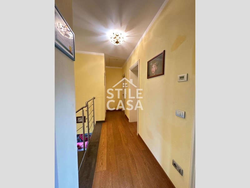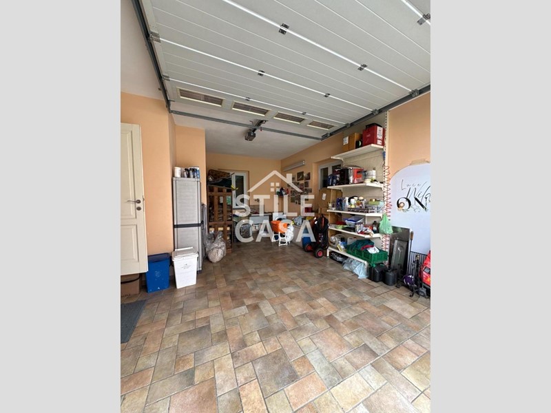 A completare il piano terra troviamo un bagno finestrato elegante, con doccia in muratura e termoarredo, ripostiglio a uso lavanderia/centrale termica, oltre a un pratico collegamento interno con il garage, che ospita anche una funzionale zona lavanderia. Ogni ambiente è pensato per offrire massimo comfort, praticità e stile.