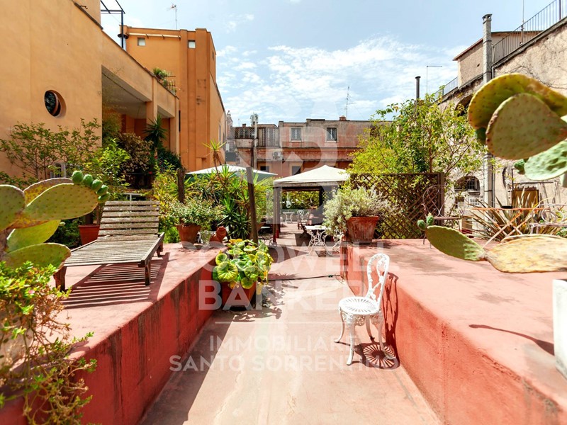 Sul terrazzo trovano posto anche un piccolo vano adibito a studio e un bagno di servizio, che rendono questo spazio esterno ancora più funzionale e vivibile.