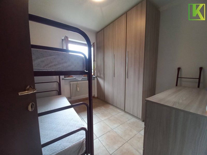 L'appartamento si compone da un soggiorno con angolo cottura, quindi un piccolo disimpegno divide la zona giorno dalla zona notte che ha una camera da letto con affaccio sul giardino ed un bagno.