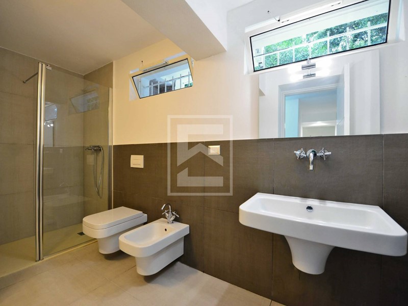 Un terzo bagno finestrato con doccia e un locale guardaroba con lavanderia al piano seminterrato