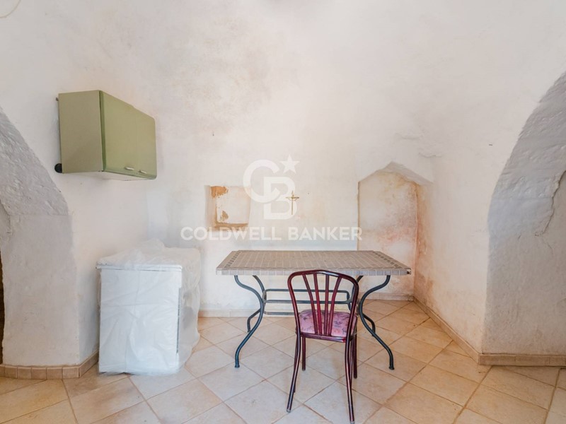 Il trullo, da ristrutturare, conserva il cono centrale originale e due ampie alcove, offrendo le basi ideali per un progetto di recupero fedele alla tradizione ma con tutte le comodità moderne.