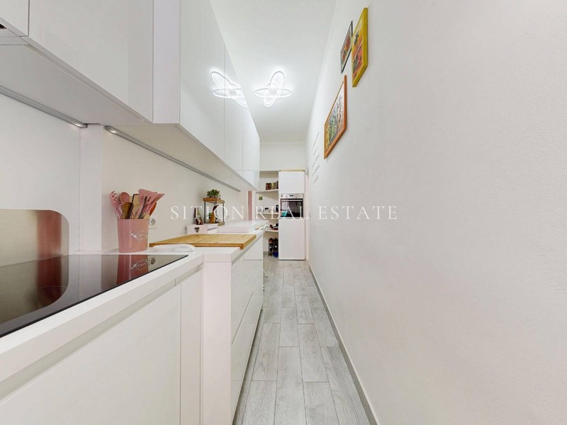 Lappartamento è stato completamente ristrutturato con finiture di pregio e arredi su misura, pensati per ottimizzare ogni spazio.