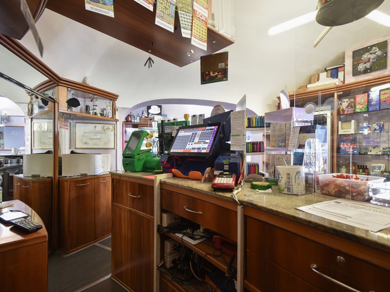 All'interno sono presenti una zona banco ben attrezzata, l'area caffetteria, le scaffalature per esporre i prodotti di tabaccheria e il bagno.