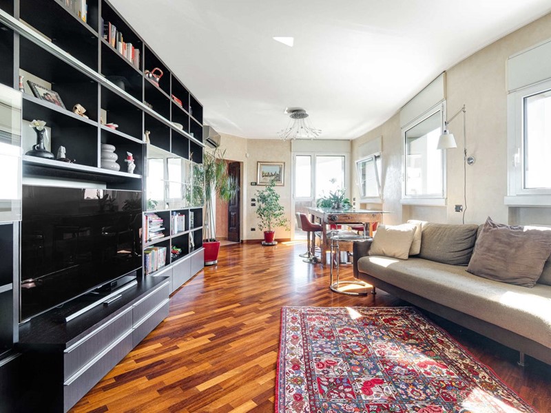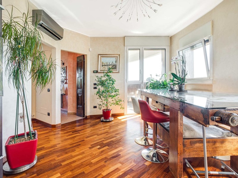 Una soluzione abitativa esclusiva, ideale per chi desidera vivere in un attico di alto livello, con vista aperta sulla città e panorami spettacolari sulle montagne del Resegone e del Monte Rosa.